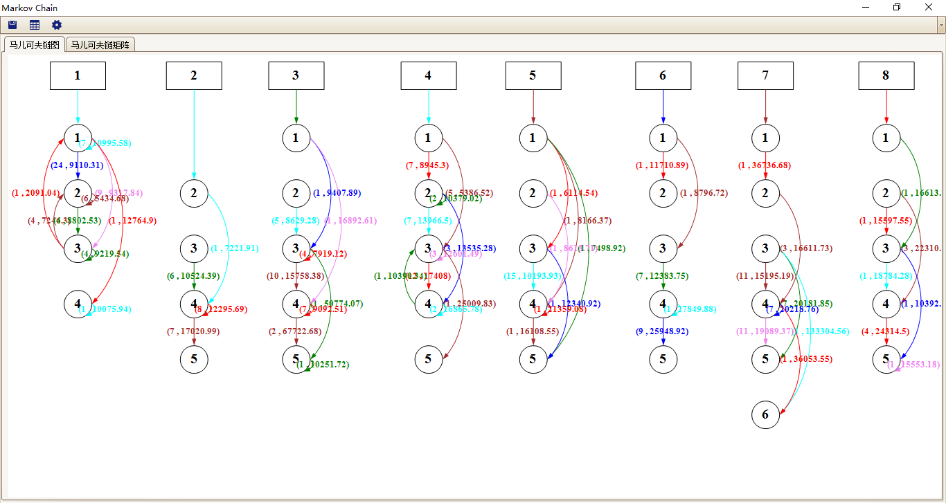 利用马尔科夫链分析各枝条不同状态之间的概率转移矩阵。
